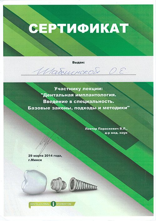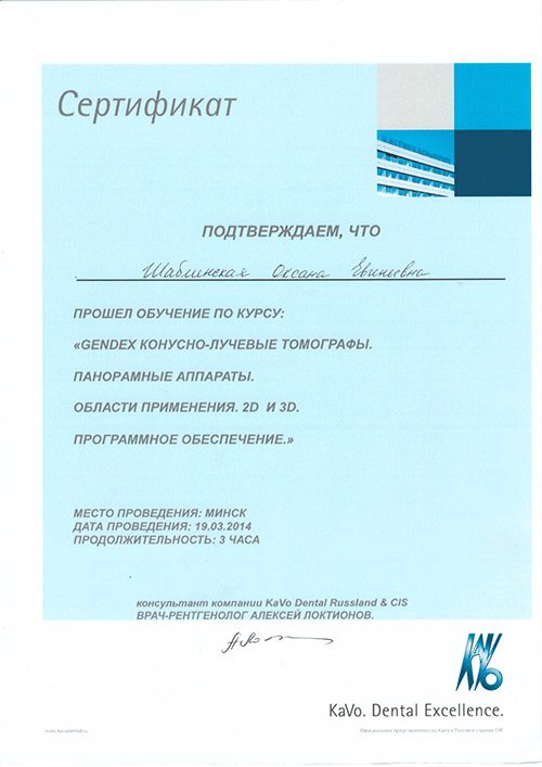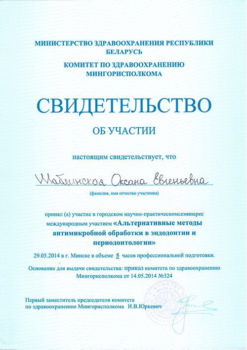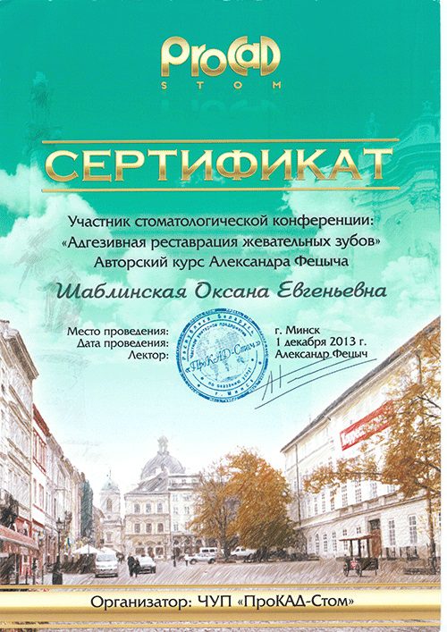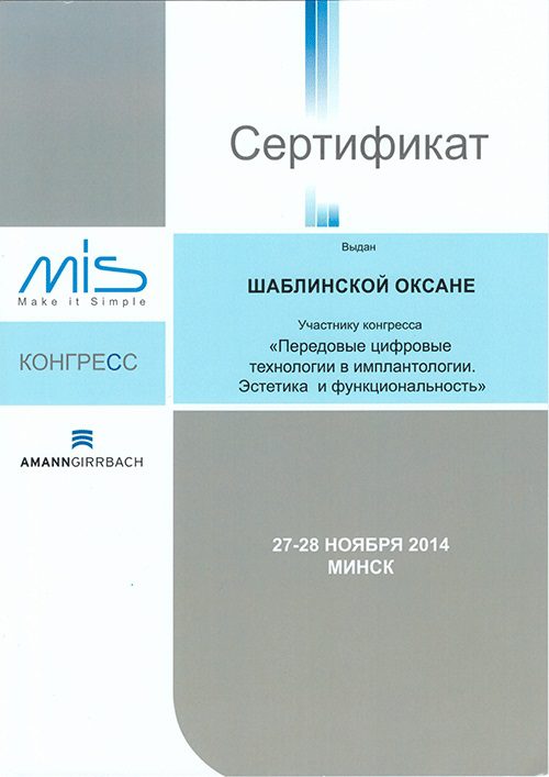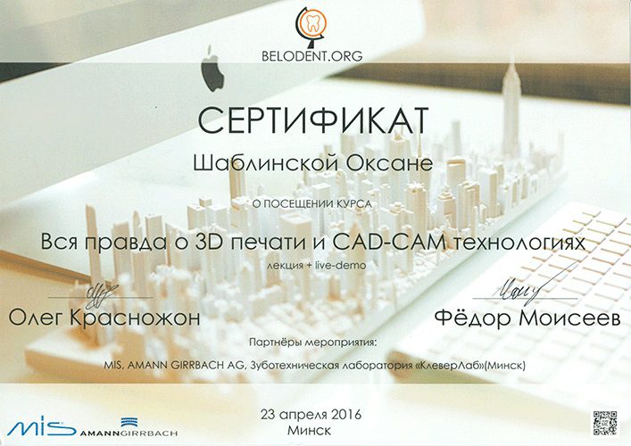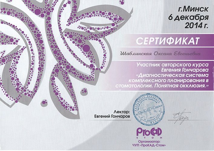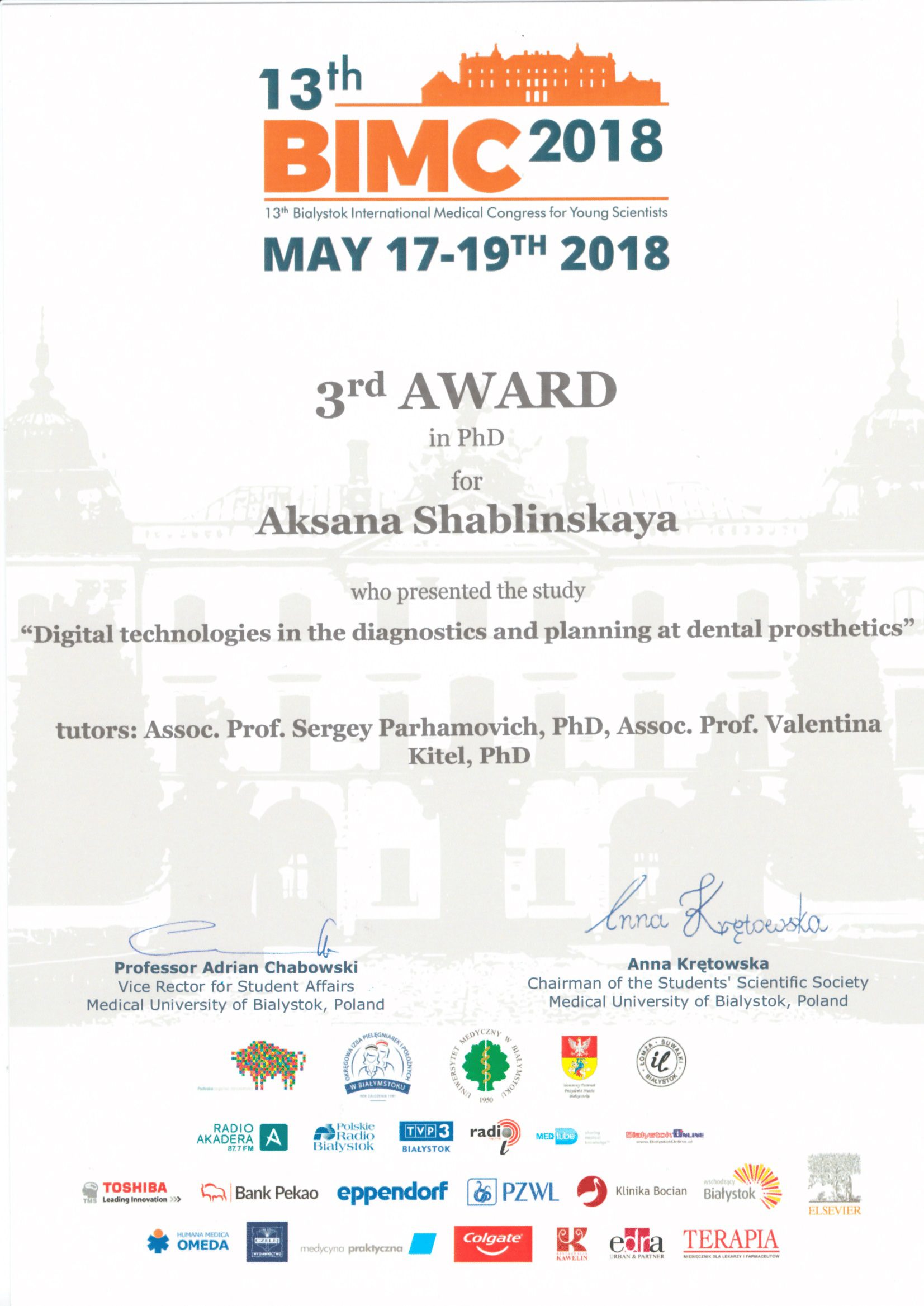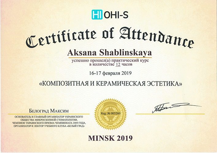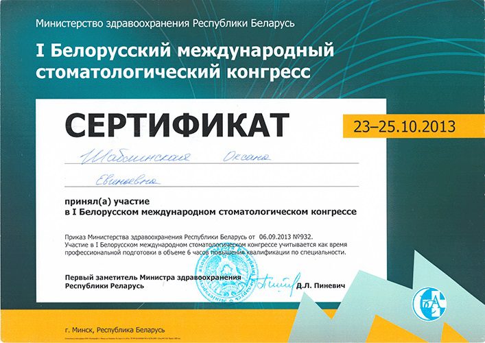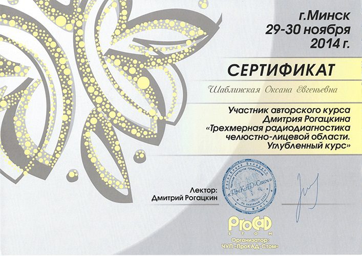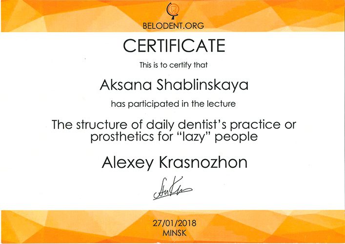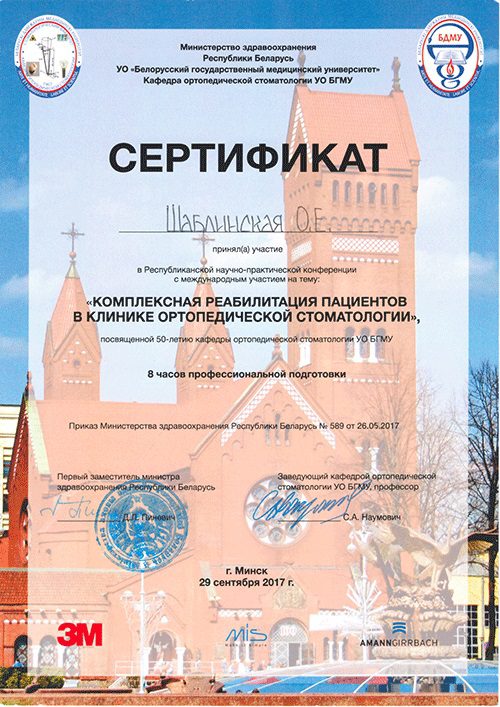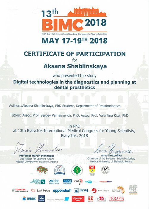 Успешно прошла обучение в клинической ординатуре на кафедре ортопедической стоматологии. Белорусского государственного медицинского университета.