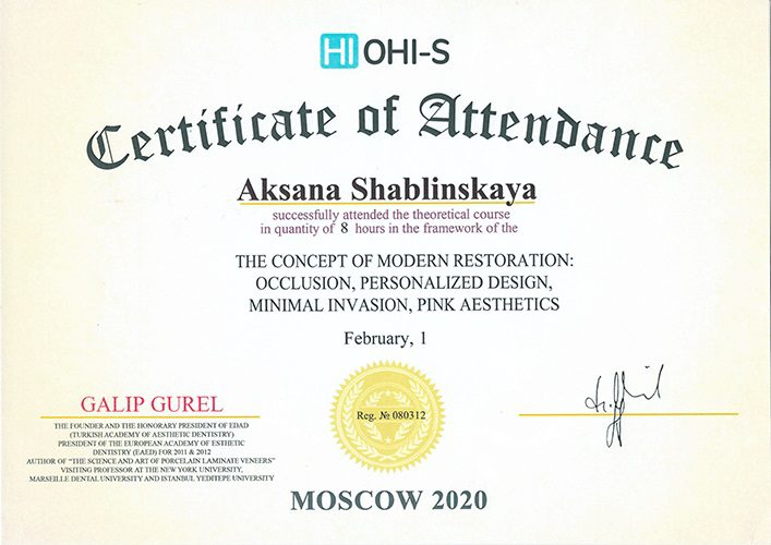 Уже на третьем курсе университета я чётко определилась с ортопедической стоматологией как своим основным направлением. Впоследствии я углублялась в эту сферу, пройдя обучение в клинической ординатуре на кафедре ортопедической стоматологии БГМУ. За плечами — 12 лет опыта работы в государственных и частных клиниках Минска. Этот путь научил меня не только профессиональному подходу, но и ценности командной работы. Для меня важно работать в команде: несколько взглядов всегда позволяют находить наиболее эффективные и продуманные решения для наших пациентов.