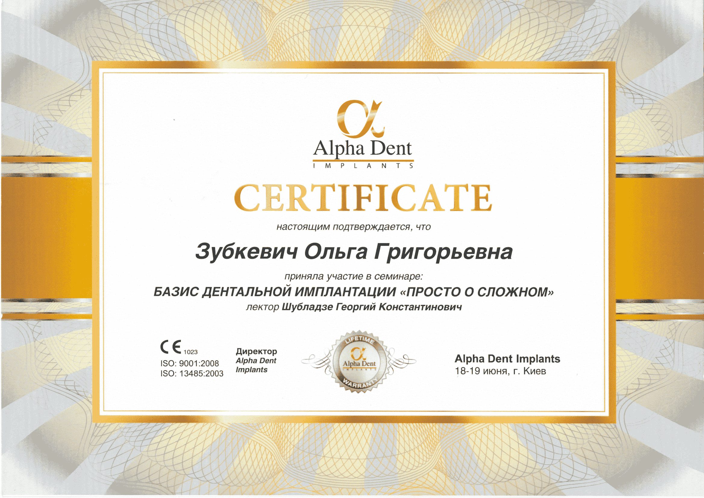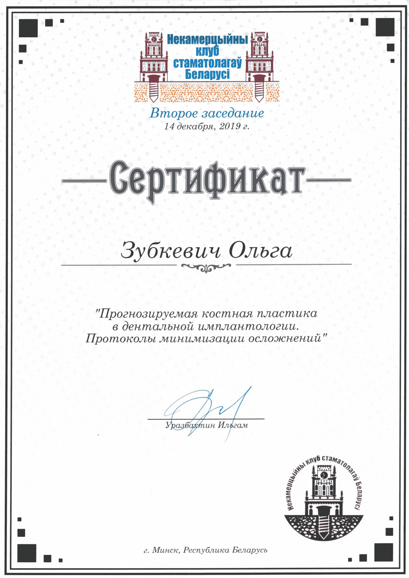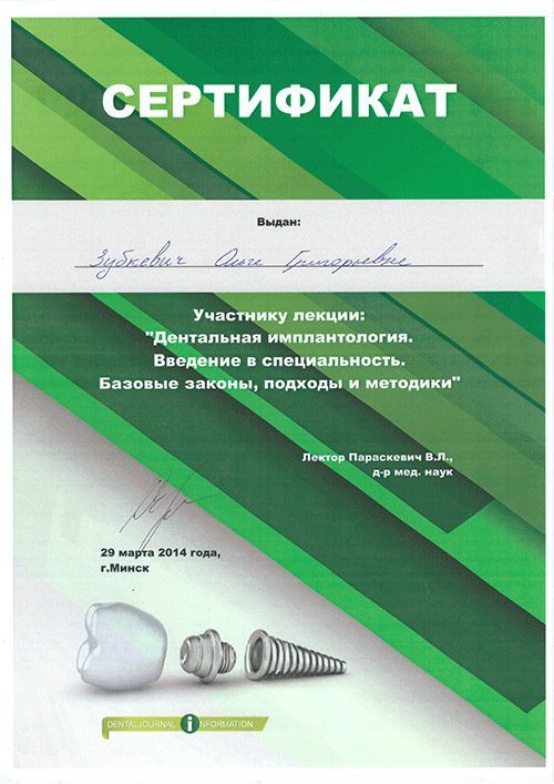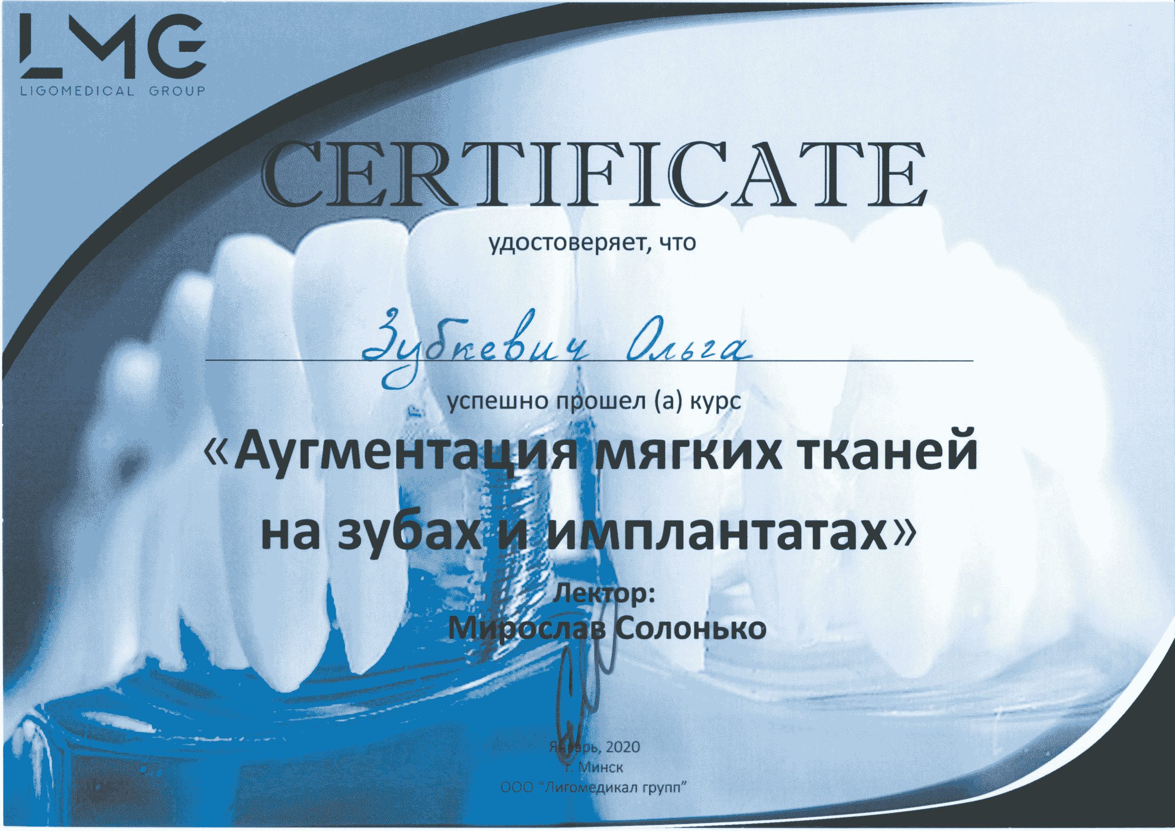 2007 Прошла полный курс переподготовки на на уровне высшего образования по специальности  «стоматология хирургическая».